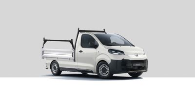Toyota PROACE Platforma to pojazd, który może pochwalić się świetnymi warunkami do pracy. Wydajny silnik Diesla o pojemności 2 litrów i mocy 144 KM, wysoka ładowność do 1100 kg, solidna rama pośrednia stanowiąca wytrzymałą podstawę do montażu skrzyni ładunkowej o powierzchni 4,8 m2 – robią wrażenie.